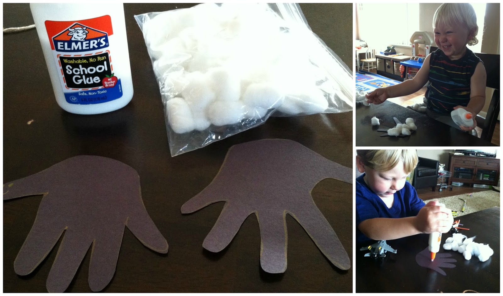 I went online and found a bunch of eye, nose and mouth clip art and printed them out. Once I cut them, I gave the boys a plastic plate and put painter's tape on the plate where the eyes, nose and mouth should go. Then I set them free!